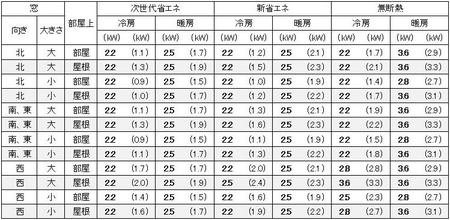 それより小さい場合は小を選択してください。もし、西と南に窓がある場合は、条件の厳しい西を参考にしてください。